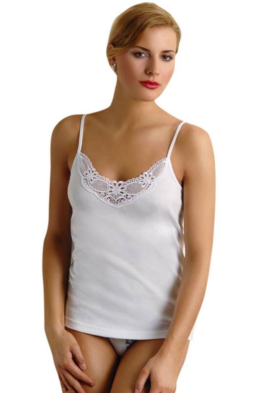 Anıt Beyaz İnce Askılı Yakası Dantelli Pamuklu Atlet 2103-1