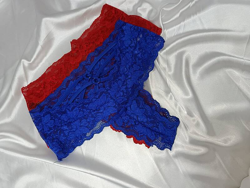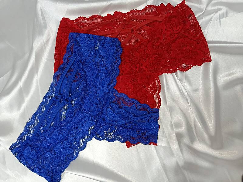 Sırt bölgesindeki çoklu ince bantlar çapraz şekilde yerleştirilmiş olup, sıradanlıktan uzak, dikkat çekici bir tarz kazandırır. Hem özel günler hem de günlük şıklık arayanlar için ideal. Yüksek bel tanga, kırmızı dantelli külot ve çapraz bant detaylı iç çamaşırı arayanlara hitap eder.