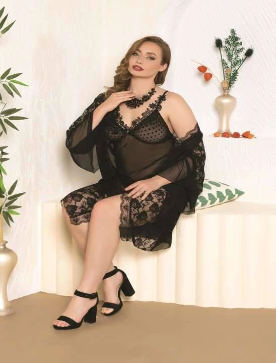 Sabahlıklı Büyük Beden 3lü Fantezi Takım Siyah Real Passione 9131