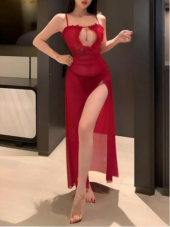 Black Desire, geceye zarafet ve cesaret katmak isteyen kadınlar için tasarlandı. Yumuşak ve nefes alan transparan kumaşı, vücudu hafifçe sararak feminen bir siluet oluşturur. Göğüs kısmındaki dantel detayları romantik bir dokunuş verirken, derin yırtmacı modern ve çekici bir görünüm sunar. Ayarlanabilir askıları sayesinde bedenine rahatça uyum sağlar. Hem özel gecelerde hem de kendini şımartmak istediğin anlarda ideal bir seçimdir.