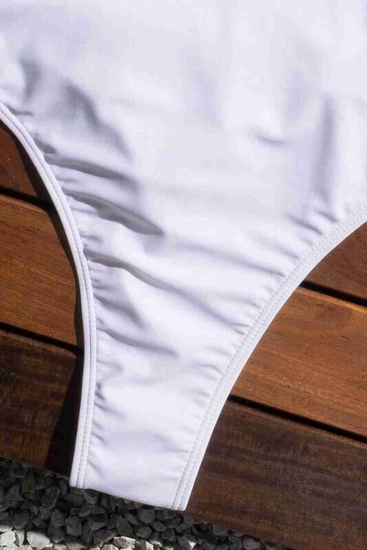 V yaka ve sırt dekoltesi, mayoya feminen bir dokunuş katarken, Brazilian kesim ile cesur ve çekici bir görünüm sağlar.